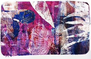 Wir experimentieren mit verschiedenen Materialien und Schablonen auf Gel-Druckplatten, so dass spannende Kunstwerke entstehen, die für sich stehen oder z.B. als Grußkarten Verwendung finden können.