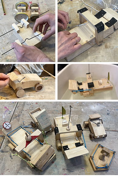 Holz zum Rollen und Schwimmen bringen: Fahrzeuge und Fähren