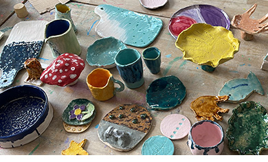 Ob alleine als Erwachsene/r oder Jugendliche/r oder mit Freund/in, ob Oma/Opa mit dem Enkelkind oder die Tante/der Onkel mit dem Patenkind: Hier findet jeder seinen Platz zum kreativen Tun. Dabei lernen und erproben wir einfache Techniken, um unsere Ideen umzusetzen. Von der abstrakten Skulptur über Osterhasen bis hin zum individuellen Kaffeebecher ist (fast) alles möglich. Es können einzelne, aber auch mehrere Termine gebucht werden. Wird ein Folgetermin gebucht, ist es auch möglich, die Arbeiten zu glasieren.